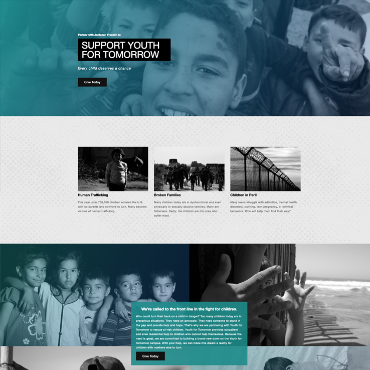 Youth for Tomorrow is a nationally recognized non-profit. We launched a single-page website to promote and engage users in their current building campaign by highlighting areas of need and sharing the story.